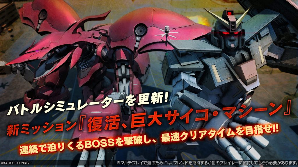 バトルシミュレーターのミッションを更新! 新機体” νガンダム[HWS装備] ”への試乗や、BOSS”サイコガンダム&シャンブロ”との連戦に挑戦可能です!