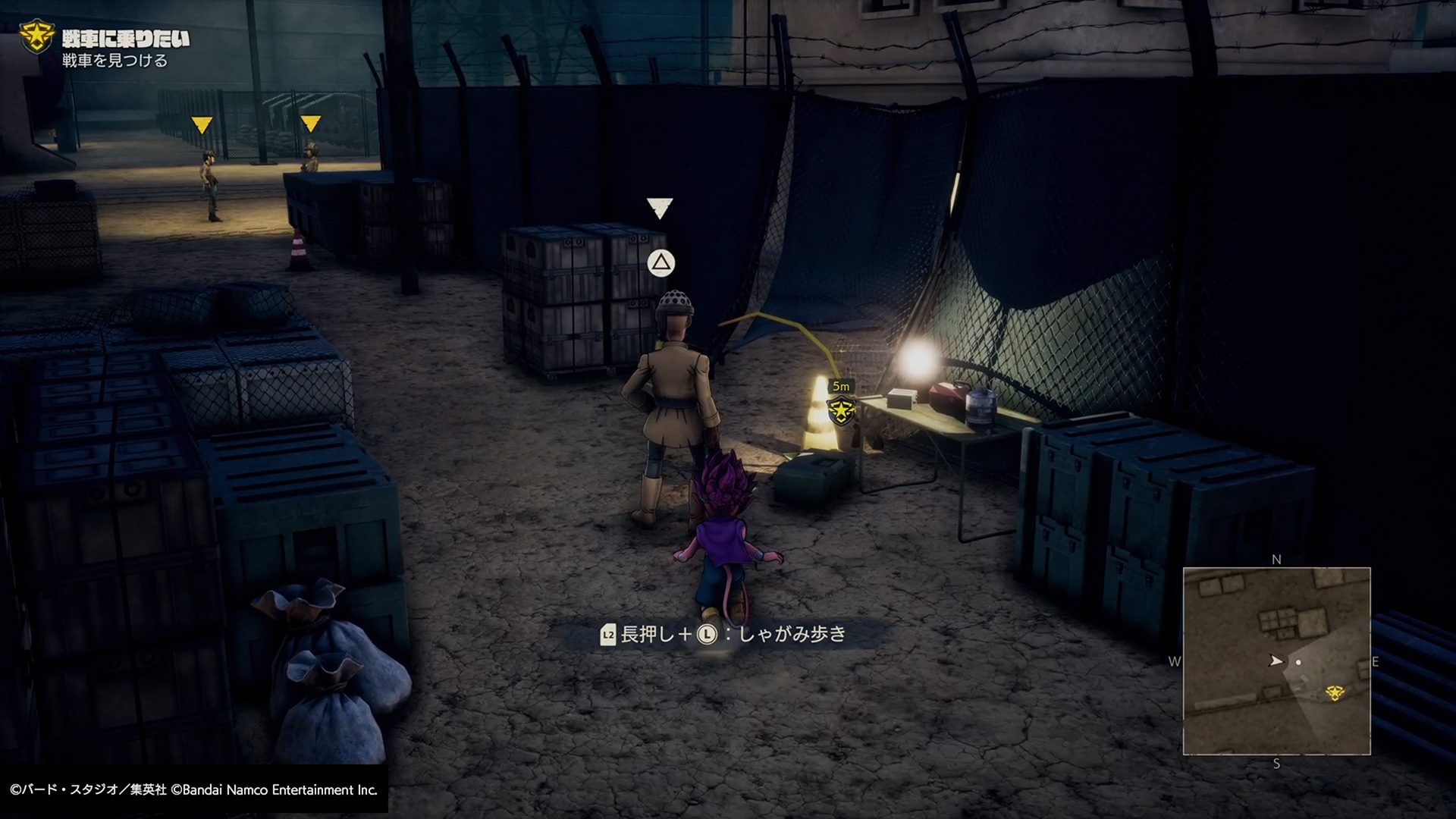 また、L2トリガーを長押しすると「ステルスモード」となってゆっくり歩くことが可能。ステルスモード中は敵の居場所や危険度などがアイコンで表示されるため、気づかれずにやり過ごす際にとても便利だ。敵に背後からこっそり近づけば、「ステルス攻撃」によって音も立てず一撃で無力化することもできてしまう。