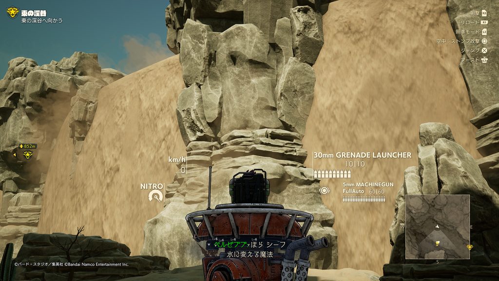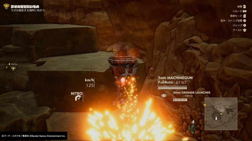 サンドランドはとても広いため、旅する際は戦車やクルマ、バイクなどのメカに乗って移動するのが基本となる。しかし、メカが通れない通路やダンジョンなどのエリアも本作には登場。そういった場所では、ベルゼブブのダッシュやジャンプを駆使しながら進むことになる。マップに隠された宝箱や素材などを見つけ出すのも探索の醍醐味だ。