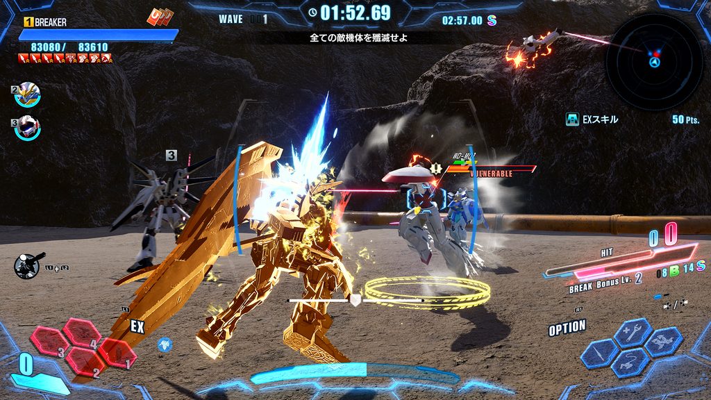 田中:基本的には敵を倒していく内容なのですが、その最中に特定の機体を倒したり、敵の攻撃から対象を防衛したり、PG(パーフェクトグレード)サイズの巨大なガンダムや巨大モビルアーマー(MA)のビグ・ザム、アプサラスなどと戦うボスバトルなどがあります。