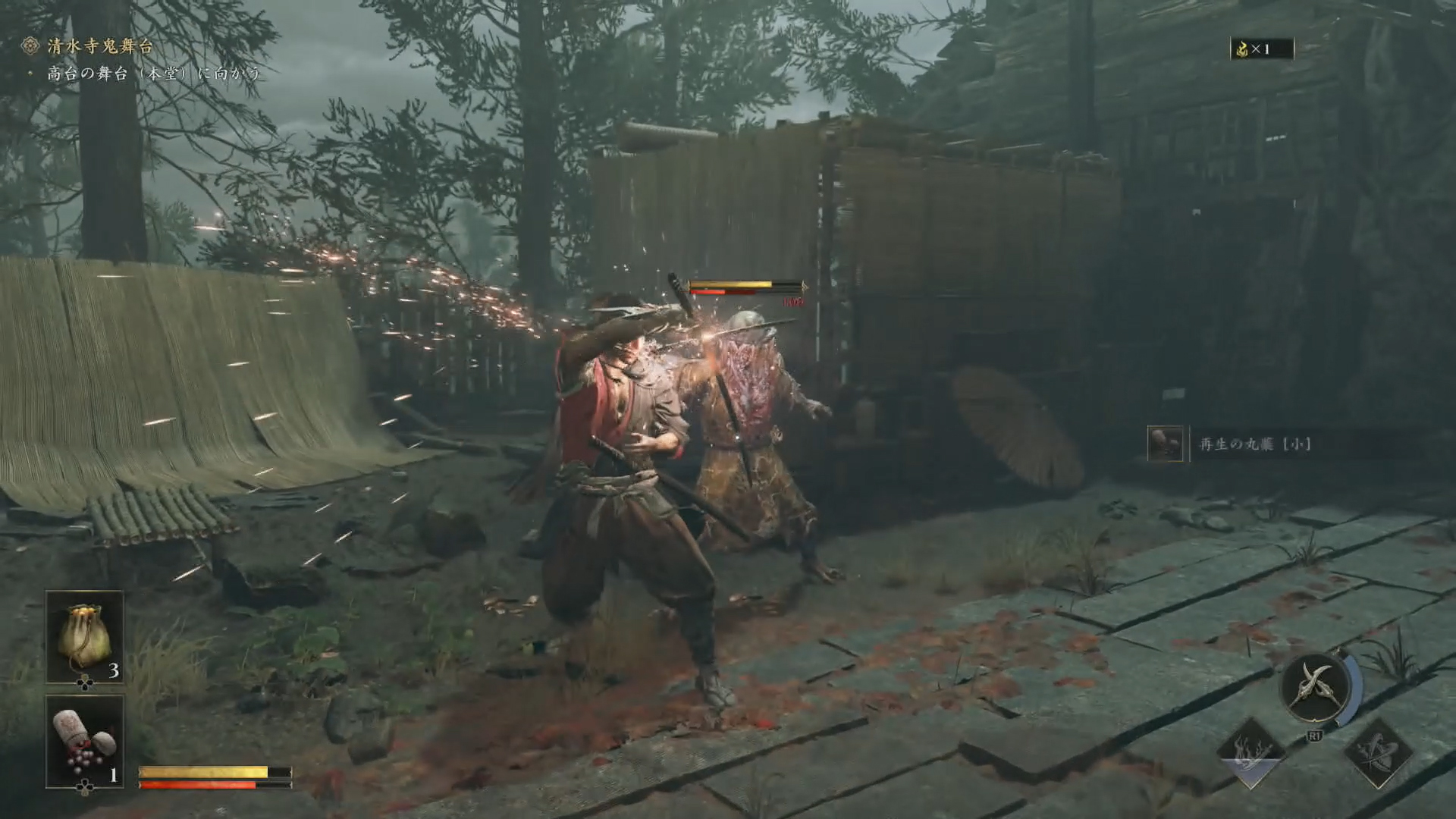 複数の敵に囲まれる場面は多いものの、受け流しや弾きを駆使して巧みにさばいていくのがとても楽しい。壁が近ければ攻撃を受け流して敵をぶつけてもいいし、弾きを決めて敵の力動ゲージを直接削ってもいい。荷車を敵にぶつけるという、なんでもありの武芸者らしい戦い方もできて驚いた。敵の攻撃を待つ絶妙な間から繰り広げられる刹那の攻防や、多人数を相手にする大立ち回りは、まるで時代劇の殺陣のようだ。力動ゲージを削った際に決められる崩し一閃にはさまざまなモーションがあり、それによって多彩なバッサリ感を味わえるのもクセになる。もちろん、倒した敵から放出される魂を吸収する、シリーズではおなじみの「魂吸収」もいいアクセントになっていた。「黄魂」を吸収すると体力を回復できるのだが、吸収中は移動こそできるものの無防備となってしまう。敵を全滅させてから吸収するか、それとも攻撃の合間をぬって吸収するかなど、戦況を見極めながらの駆け引きも楽しむことができた。また、試遊を進めていくとフィールドに隠されたものを顕現させる「眼覚醒【探知】」という力も使うことができるようになる。先へ進むためにこの力を使う場所があったのだが、もしかしたらそれ以外にも何か見つかる場所が隠されていたのかも?