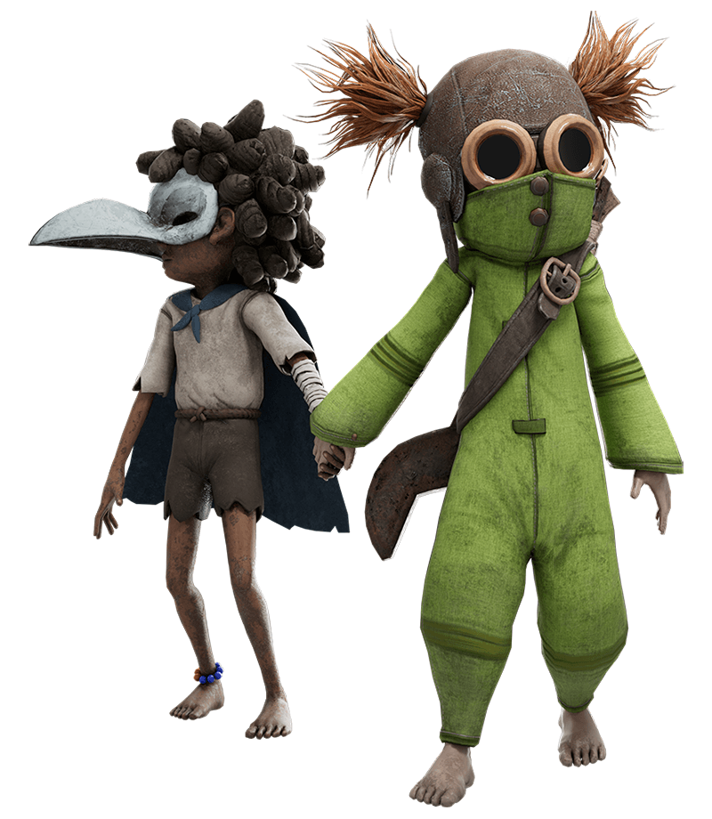 ロゥは弓の名手さながらの、鋭い眼光を持つ想像力豊かな少年。このノーウェアから抜け出す方法は必ずあると信じている。アローンは機械いじりを得意とする、好奇心旺盛な少女だ。親友のロゥとは何よりも固い絆で結ばれている。