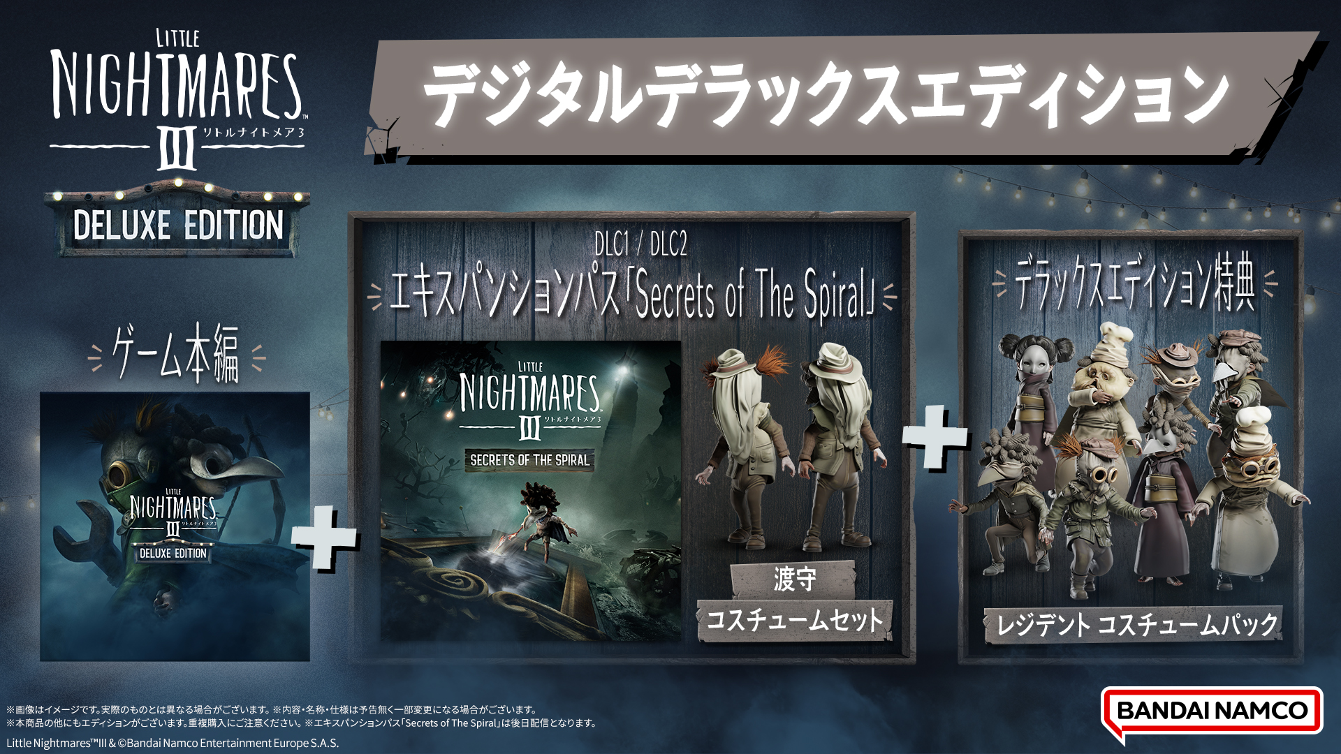 ダウンロード版は通常版のほかに、『デジタルデラックスエディション』も販売される。ゲーム本編に加えて、エキスパンションパス「Secrets of The Spiral」と、その特典となるDLC「渡守 コスチュームセット」、さらにDLC「レジデント コスチュームパック」を収録したセット商品だ。