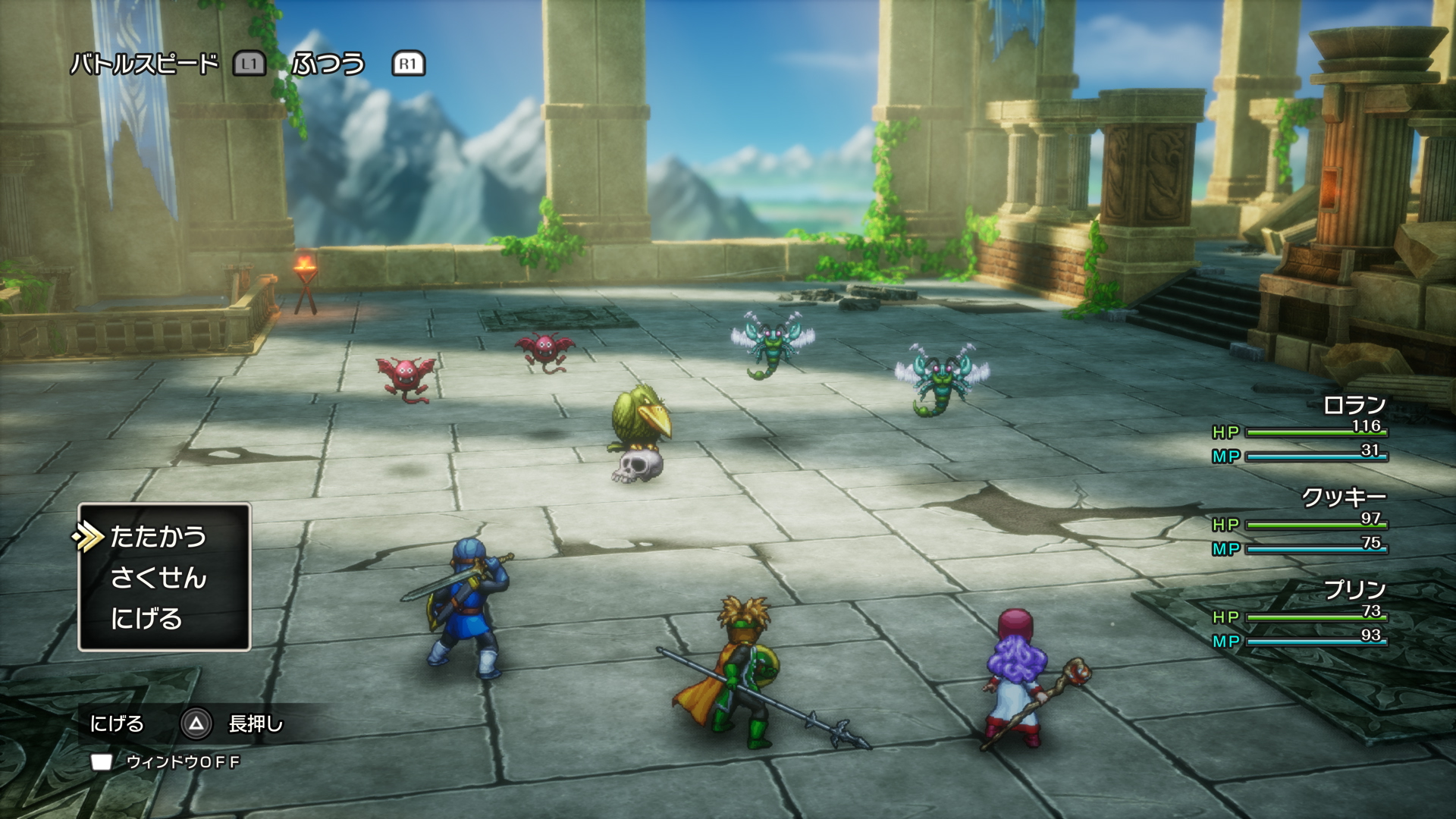 バトル設定で有利コマンドをオンにすれば、弱点を突く呪文や特技を選択したときに、敵の上に文字で表示されるようになった。より有効な呪文や特技を選んでいこう。