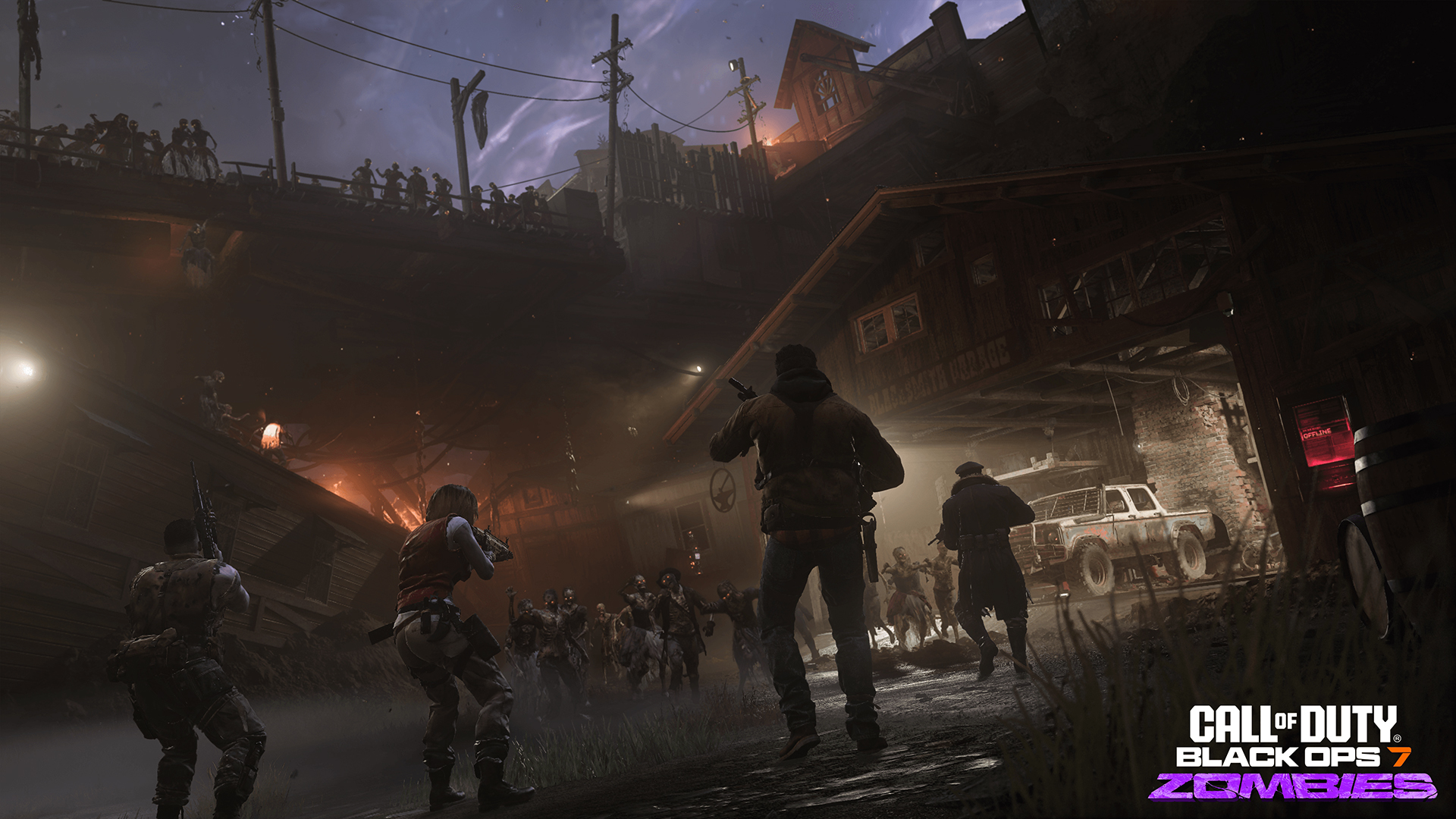 本作のゾンビモードのストーリーは、『Black Ops 6』のゾンビマップ「レコニング」がクライマックスを迎えた続きを描く。ヤヌスタワー頂上での激しい戦闘のあと、喜びも束の間、グリゴリー・ウィーバー、Dr.エリザベス・グレイ、マッケンジー・カーバー少佐、マヤ・アギナルドはダークエーテルの次元に突入。そして地面から立ち上がる間もなく、出迎えた者たちに驚愕する。それはオリジナル版のゾンビ・クルーであるエドワード・リヒトーフェン、正木武雄、ニコライ・ベリンスキー、そしてタンク・デンプシーだった。『Black Ops 6』のクルーは、別の姿となった伝説のキャラクターたちとともに、新たな悪夢に立ち向かう。