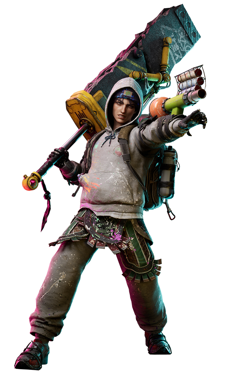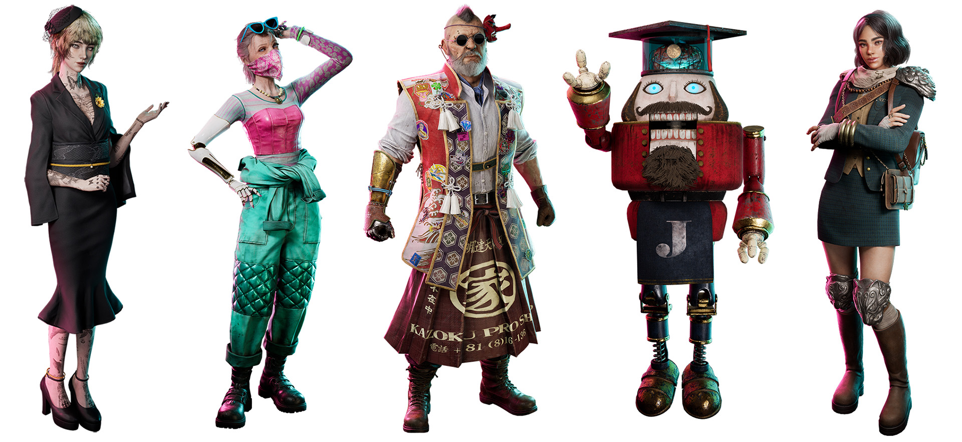 拠点となるレイダー協会では、喪服の受付嬢「クリコ」や、隻腕の老婆「グラムB」、天狗仮面の親父「クラッシュ・カワサキ」、武器や防具の開発を担うロボット「アドミラル・ホンダ・改」、先輩の美女レイダー「ミレーネ」など、クールでイカれた仲間たちがあなたを待っている。