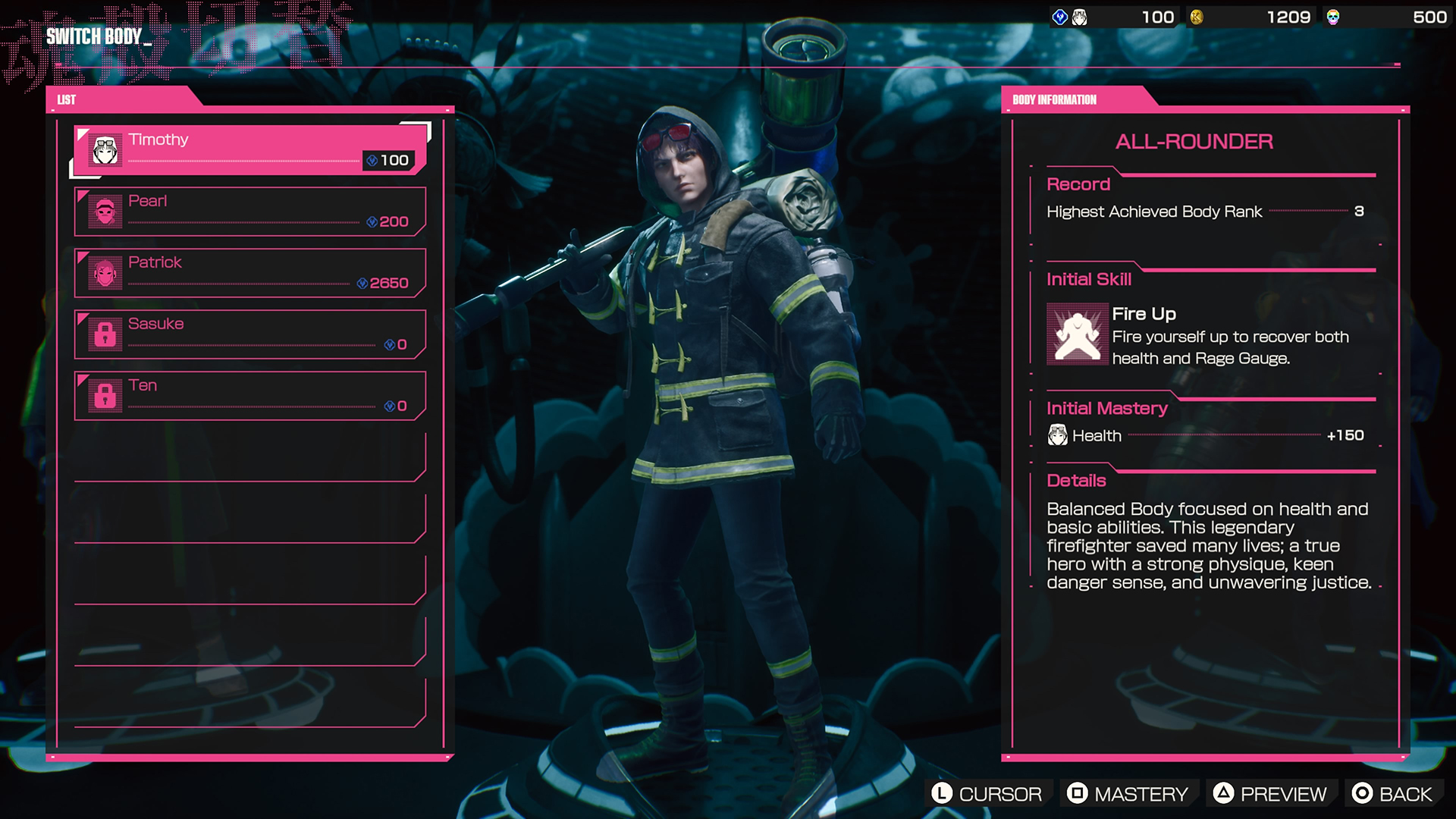 探索中に死亡するとボディとともに装着していたコアもすべて失われてしまうものの、マスタリーの効果は新たなボディでも発揮される。繰り返し挑戦すれば、ベースとなる能力を上昇させていくことが可能だ。能力のバランスが取れたオールラウンダーの「ティモシー」、基礎攻撃力が高めに設定された「パール」など、ボディにもさまざまな種類がある。新しいボディの能力や、新たに獲得するコア、積み上げたマスタリーをフル活用し、地獄の底を目指そう。