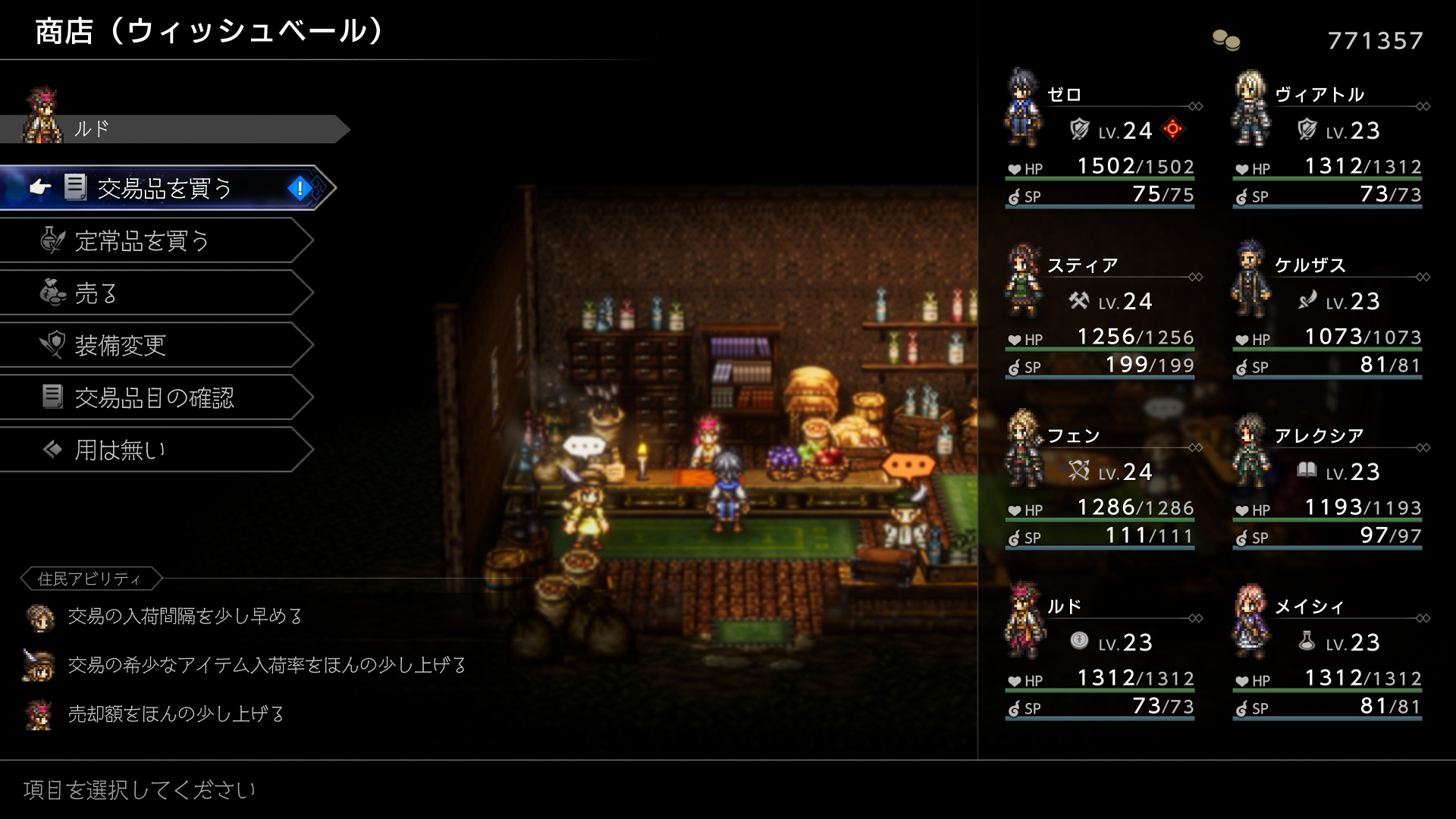 町を復興させていけば、さまざまな施設を作ることができる。料理を作れる「拠点」、さまざまな素材を収穫できる「畑」や「牧場」に加え、「商店」を建てれば旅先で仕入れた情報で商品のラインナップが増えたり、特別な交易品を入手できたりする。魔物の捕獲依頼を受け、捕獲した魔物と戦って報酬を得られる「魔物闘技場」、旅の思い出を振り返ったりBGMを聴けたりする「博物館」といった施設も建設可能だ。また、住民はそれぞれ町に役立つ「住民アビリティ」を持っている。適材適所に配置してあげよう。