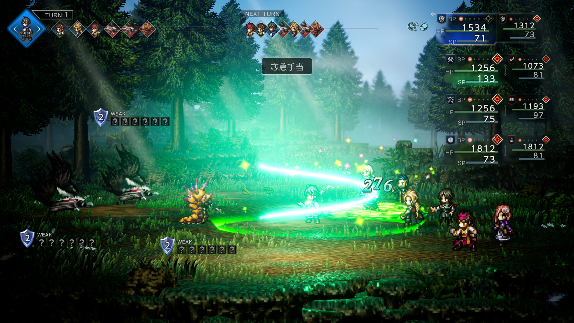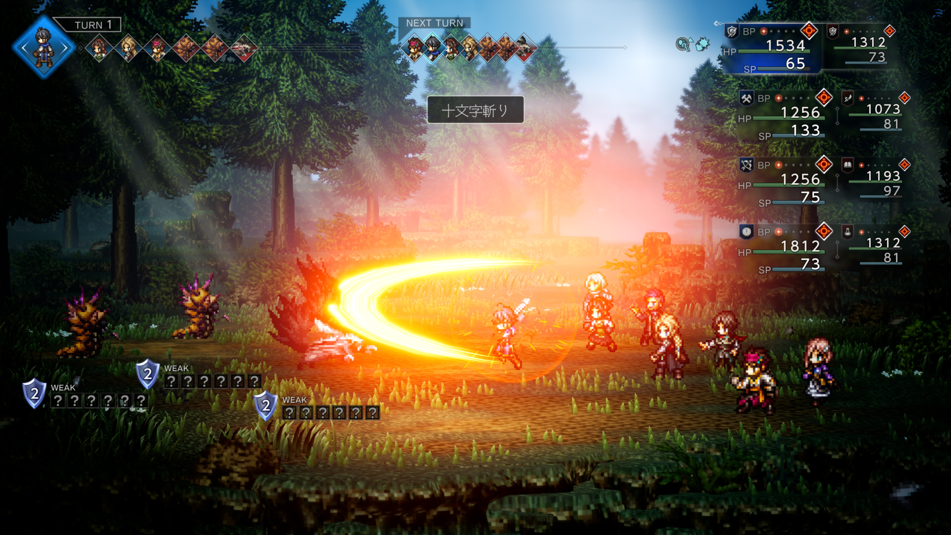「オクトパストラベラー」シリーズ独自のバトルシステムである「ブレイク&ブースト」は、本作にも継承されている。敵の弱点を突くことでシールドポイントが減少し、0まで削れば行動不能のブレイク状態に。ブレイクした敵は一時的に行動不能かつ防御力も下がるため、攻撃や回復のチャンスになる。