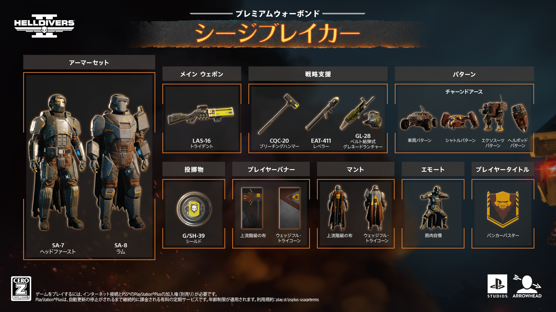 突破不可能な陣地に敵が立てこもり、自分の小隊は立ち往生。敵陣へ攻め入ろうにも手段がない。ヘルダイバーの諸君にこんな経験はありませんか?まさにそんな状況にぴったりのウォーボンドを国防省が用意しました。本日2月3日(火)配信のプレミアムウォーボンド「シージブレイカー」で敵の要塞を叩きのめしましょう!