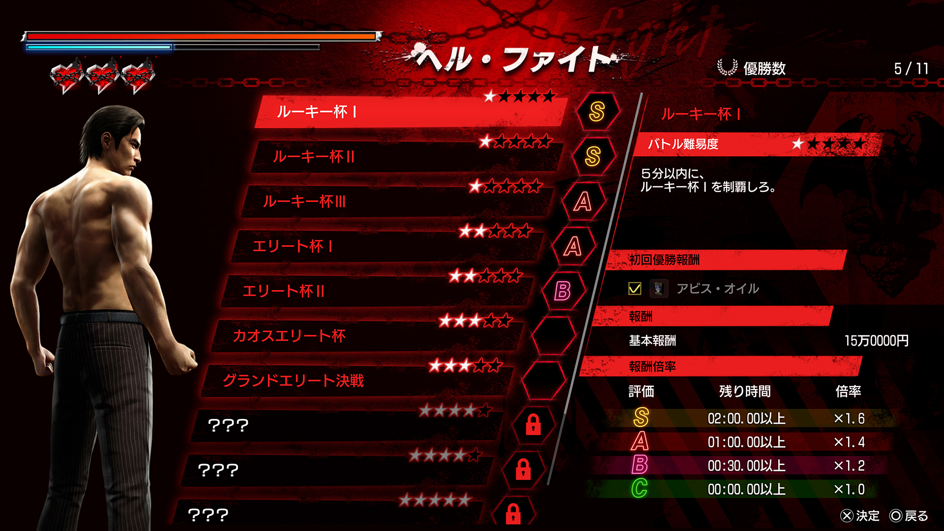 「ヘル・ファイト」はリングの上で、挑戦者同士のタイマン勝負が行なわれるバトルコンテンツ。制限時間内に敵をKOすることで勝利となる。マッチによっては、連続で試合が行なわれるため、体力や時間を最後までいかに残しておけるかが重要となる。