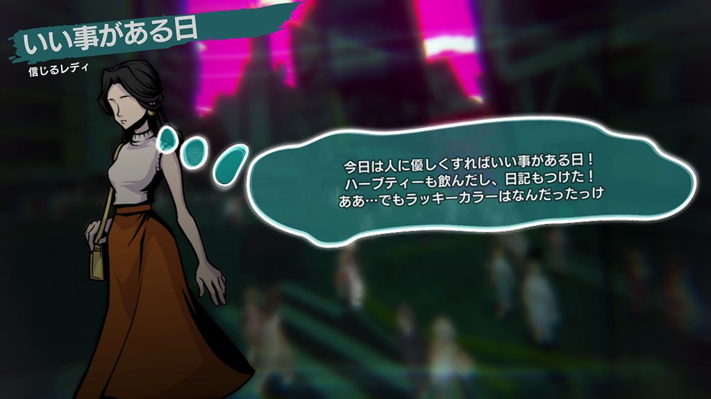 また、渋谷の街では問題や悩みを抱えた人に遭遇することも。死神のゲームで出されるミッションとは関係ないサブイベントだが、助けてあげるとさまざまなメリットを得られる。ときには死神や他チームのメンバーとの交流も? インプリントはもちろん、リマインドやダイブなどのサイキックを駆使して問題を解決しよう。