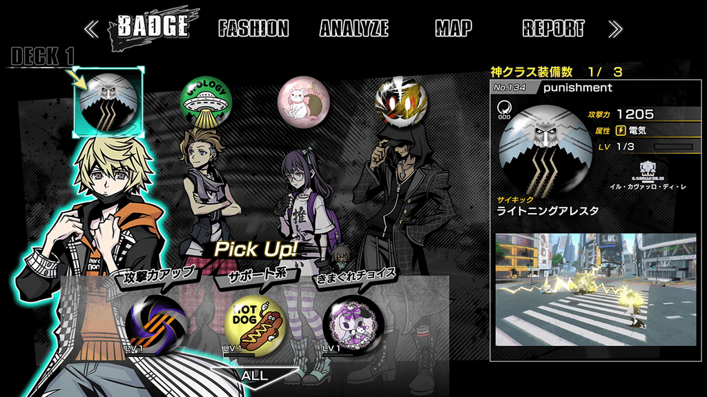 各キャラがバトルで使用するサイキックは、バッジを付け替えることによって変更できる。攻撃、回復、サポートといった、多彩な効果を秘めているバッジは300種類以上! ”神クラス”とカテゴライズされる強力なバッジや、特定の組み合わせで固有アビリティが発動する”アンサンブルバッジ”も存在する。
