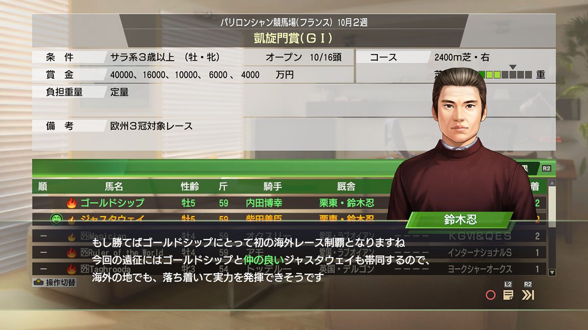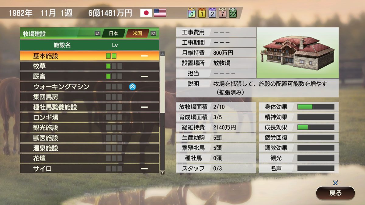 さらなる新要素として、史実期間内における海外牧場の開設と、プレイヤーだけが種付けできる「Private種牡馬」を繋養する施設の建設が可能になった。
